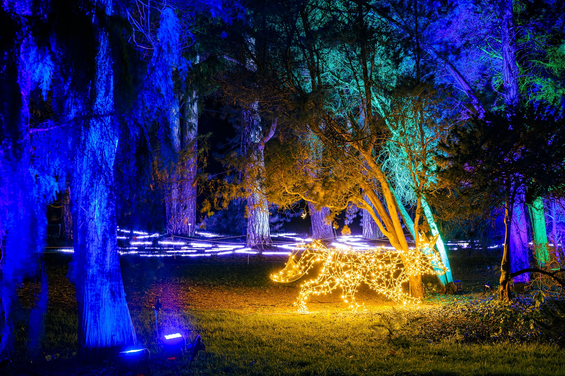 מנהרת אור אינטראקטיבית בה יתקיים מופע משולב של תאורה ומוזיקה, שיגיב לתנועת המבקרים, שביל הקליידוסקופ חוויה צבעונית של השתקפויות ותאורה דינמית, שביל הרקיע בו יוארו צמרות העצים באפקטים של כוכבים. החממה הגדולה תהפוך למתחם מופעי לייזר, בהמשך יהנו ממתחם האודיו־ויזואלי, שבו המבקרים ישתמשו בקולות ובצלילים כדי להאיר את העצים, “אלף מטרים של אור” שטח ענק המלא במאות אלפי נקודות לד הנדלקות בתיאום עם פסקול מוזיקלי. בהמשך יגלו המבקרים את מתחם המערות ובו עשרות אלפי נקודות אור וכוכב ענק בגודל של שישה מטרים שיהפוך למופע אור ומוזיקה עוצר נשימה. מיד אחריו ייכנסו אל יער החיות הקסום ובו חמישה עשר פסלי אור של חיות קסומות, בהם פלמינגו, איילים, דב בת יענה, שועלים, דבורה, כוורת וארנבים. בסיור יגיעו גם אל ממלכת הלילה, מתחם אולטרה סגול ייחודי הכולל שדה פרחים זוהרים, מנהרת אולטרה סגול, ראש דרקון ענק אולטרה סגול, שדונים ופיות מאירים.